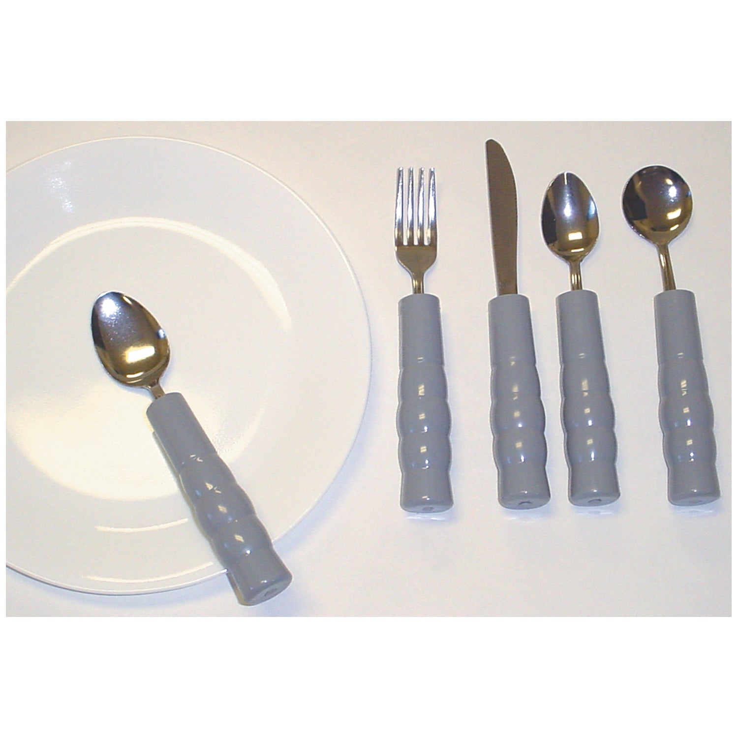 Weighted Utensils, Set of 4 Includes: Fork, Teaspoon, Knife & Soup Spoon (A handling charge of $9.95 will be added to any order under $25.00) (DROP SHIP ONLY)