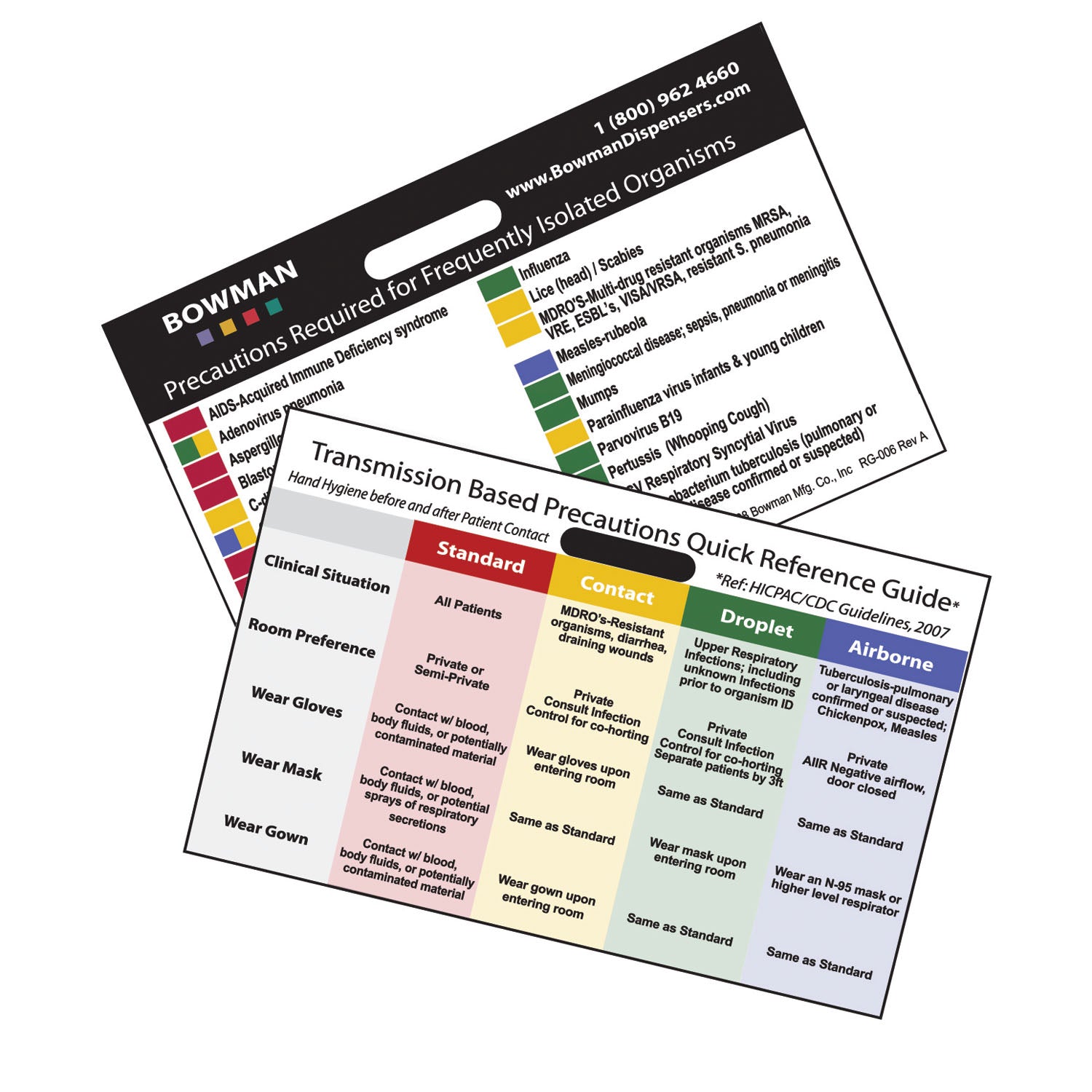 Transmission Based Precautions Quick Reference Card, Horizontal, Attaches to Name Tag Holder, 3 3/8"W x 2¼"H x 1/16"D, 25/pk (pk=ea) (Made in USA)
